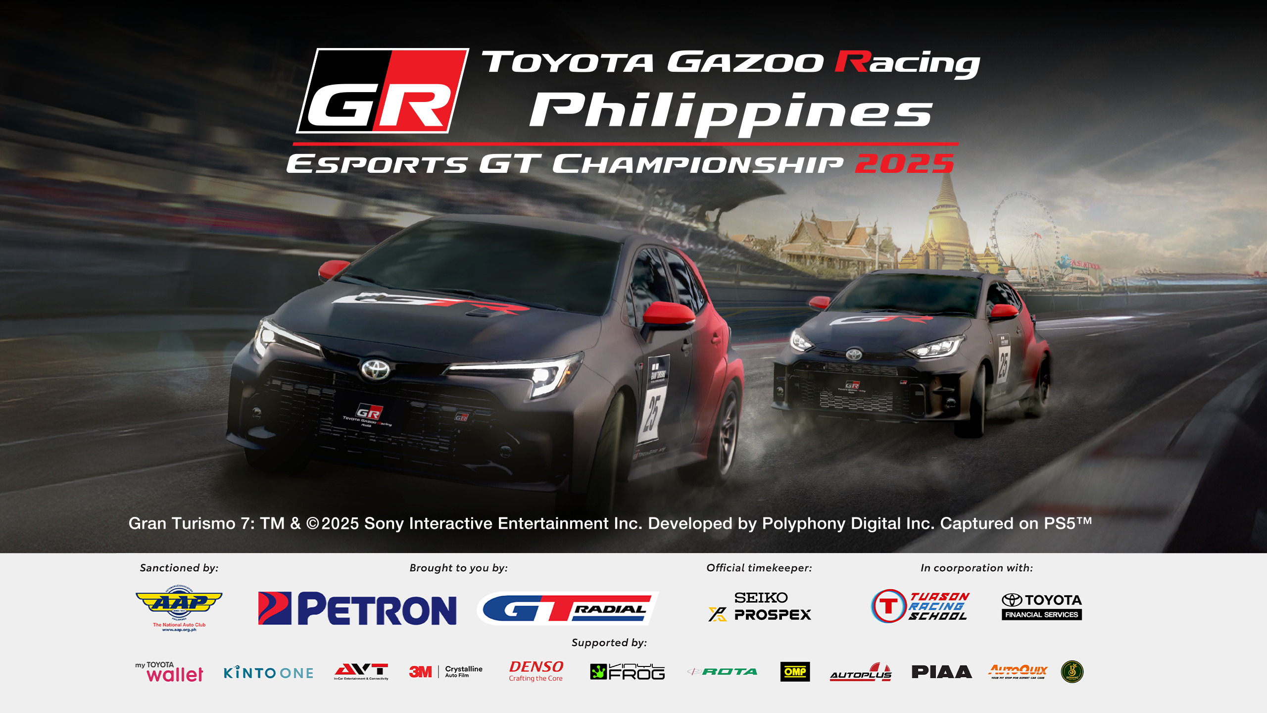 The TOYOTA GAZOO Racing Philippines eSports GT Championship 2025 is sanctioned by the Automobile Association Philippines and is brought to you by Official Fuel & Lubricants Partner Petron and Official Tire Partner GT Radial.
